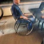 Zenuwachtig zitten we aan tafel: met de gedachte: als hij mij maar niet vraagt om dat wiel, of de band eruit te halen,