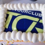 Zijn dochter heeft eerst een groepsfoto op de stoep gemaakt van ons, waarna de koffie klaar stond met gebak en wat voor gebak met het logo van TCR. prachtig en lekker.