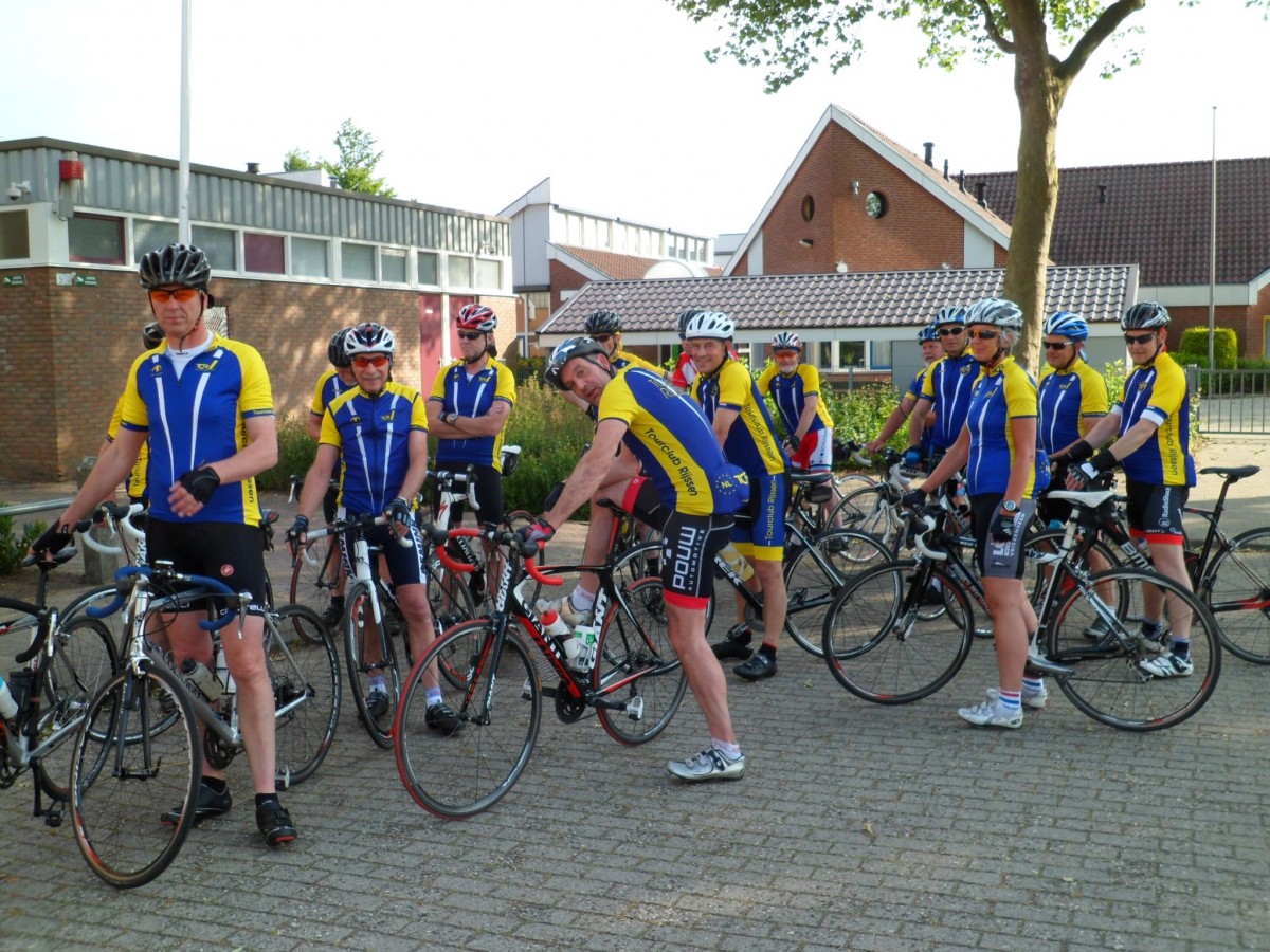 Deze Zaterdagmorgen om 8.30 uur bij de sporthal 8 man van T3 6 van T2 en Hans Poortman met zijn vrouw dus 16 man vrouw ongekend voor ons wel leuk, na heel wat gedraai rond Rijssen verloren we Chris al snel hij was niet in vorm we gingen via Elsen naar Stokkum en vandaar over het fietspad langs het kanaal tot halverwege van daaruit langs Erve Brooks richting Lochem we waren nog aan de vroege kant volgens Herman, dus bij Lochem nog even een ommetje gemaakt richting kasteel Ampsen waar ons Graaf Richard opwachtte samen met zijn kinderen.