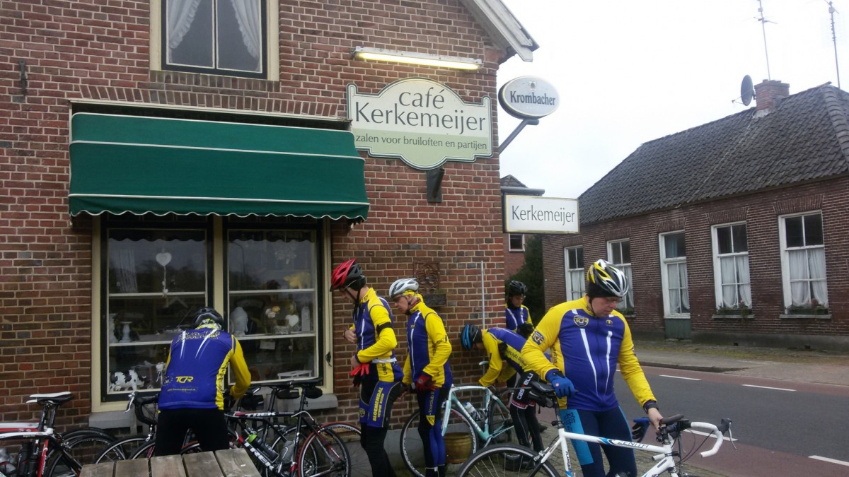 Zo naderen we al snel Rekken waar we aanleggen voor ons koffie ritueel. Een oud café maar gezellig Café Kerkemijer en de koffie was OK.