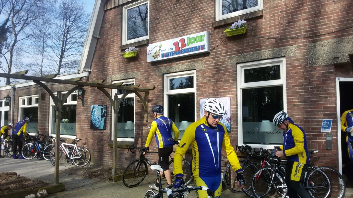 We rijden Rossum binnen waar voor ons de koffie staat te wachten bij het café het Peuleke. Een oud Twents café waar ook de opnamen zijn geweest van de Twentse komedie Van jonge leu op olde grond.
