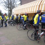 Verslag: Na een gezellig avondje was het zaterdag morgen gewoon op tijd uit bed om als toerleider te fungeren.Bij de sporthal was het al redelijk vol,tegen 9 uur was het bomvol.De T 2 ging op stap met meer dan 30 fietsers, Jans de eerste groep en Johan in z,n spoor de tweede,In een aardig tempo ging het richting Borkeld,waar de eersten al schreeuwden,iets kalmer,uiteraard kun je niet iedereen tevriend houden,dus gewoon een redelijktempo erin houden,via allerlei binnenwegen richting Zenderen ,volgens de tweedegroep stond er veel wind ,waar ze dat op bazeerden begrijp ik niet ,de eerste groepheeft er weinig last van gehad (zijn waarschijnlijk iets sterker).Aangekomen bij de kasseien van Oene via Delden werd echt het kaf van het koren gescheiden.Toen we bij cafe De Buren aan kwamen hadden we dik 60 km op de teller.Bij de koffie werd alom de toerleider geprezen om zijn bijzondere mooie route,alzeg ik hetzelf,het was ook bijzonder mooi ,of Arie en Benny het hiermee eens zijn valt te betwijfelen.Bij de koffie moest onze toerleider de koffiejuffrouw erop wijzen dat het weleens handig kan zijn om met een kan rond te gaan,wat ze dan ook promp deed,de dank was zeer groot,zoiets hoort ook bij de taak van een leider,wat een gewoon fietser niet ziet.Om een beetje bij de afgesproken 85 km te blijven werd er besloten om zo snel mogelijk richting Rijssen te koersen.Al met al een zeer geslaagde en goed georganiseerde tocht door uiteraard het goede werk van onze toerleider