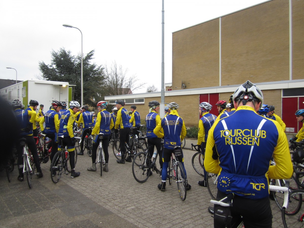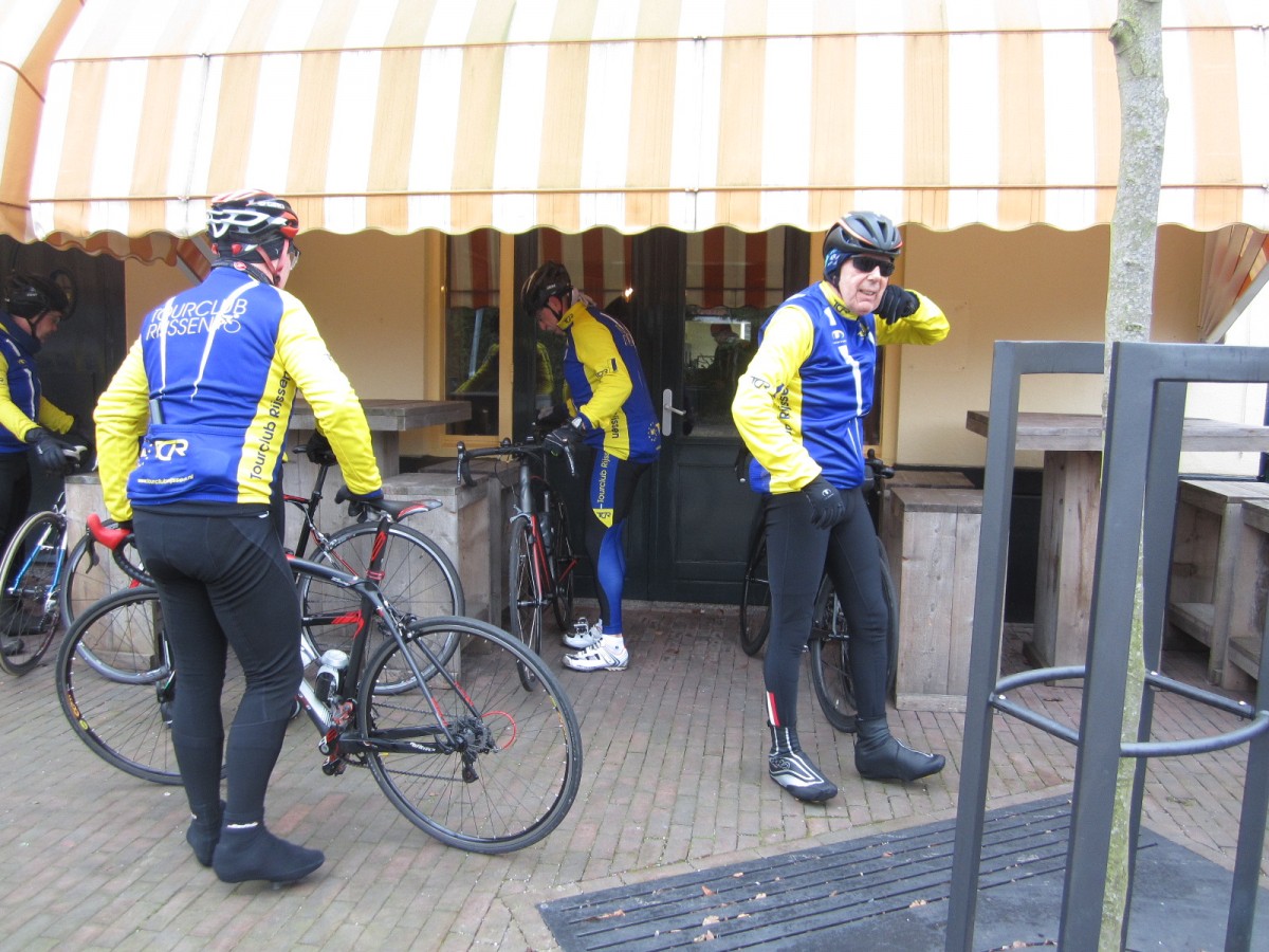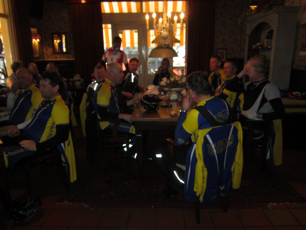 Verslag: Na een gezellig avondje was het zaterdag morgen gewoon op tijd uit bed om als toerleider te fungeren.Bij de sporthal was het al redelijk vol,tegen 9 uur was het bomvol.De T 2 ging op stap met meer dan 30 fietsers, Jans de eerste groep en Johan in z,n spoor de tweede,In een aardig tempo ging het richting Borkeld,waar de eersten al schreeuwden,iets kalmer,uiteraard kun je niet iedereen tevriend houden,dus gewoon een redelijktempo erin houden,via allerlei binnenwegen richting Zenderen ,volgens de tweedegroep stond er veel wind ,waar ze dat op bazeerden begrijp ik niet ,de eerste groepheeft er weinig last van gehad (zijn waarschijnlijk iets sterker).Aangekomen bij de kasseien van Oene via Delden werd echt het kaf van het koren gescheiden.Toen we bij cafe De Buren aan kwamen hadden we dik 60 km op de teller.Bij de koffie werd alom de toerleider geprezen om zijn bijzondere mooie route,alzeg ik hetzelf,het was ook bijzonder mooi ,of Arie en Benny het hiermee eens zijn valt te betwijfelen.Bij de koffie moest onze toerleider de koffiejuffrouw erop wijzen dat het weleens handig kan zijn om met een kan rond te gaan,wat ze dan ook promp deed,de dank was zeer groot,zoiets hoort ook bij de taak van een leider,wat een gewoon fietser niet ziet.Om een beetje bij de afgesproken 85 km te blijven werd er besloten om zo snel mogelijk richting Rijssen te koersen.Al met al een zeer geslaagde en goed georganiseerde tocht door uiteraard het goede werk van onze toerleider