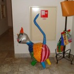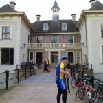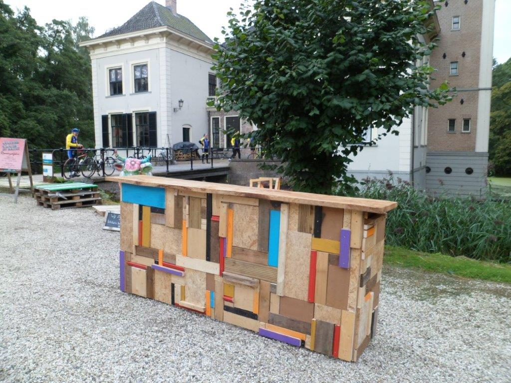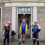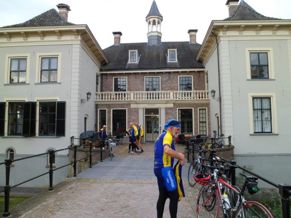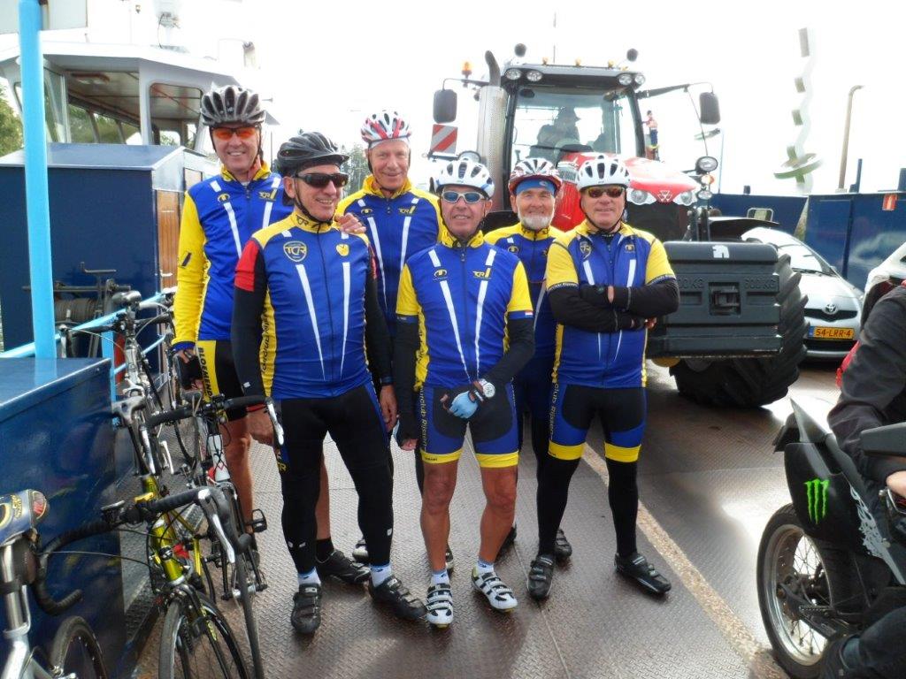 Onze tourleider Wim van de Noort meldde zich deze morgen met de woorden: Uw centurio meldt zich! De overige zes T3-ers keken elkaar aan en vroegen zich af of Wim na de vorige week zich niet te veel ging verbeelden. We fietsten weg richting Holten. In Holten moesten we voor de overweg wachten. Er kwam een man op mij af en zei tegen mij dat hij een groep vrouwen verwacht had die hem achterop kwamen maar het bleken mannen te zijn. Hij verzuchtte dat we luidkeels gekakeld hadden. Ik vertelde hem dat onze tourclub iets meer is dan fietsen. Wim stuurde ons door Holten en het ging richting Dijkerhoek. Iedereen kende de bestemming: Landgoed De Haere bij Wijhe. Dat hadden we vorige week besloten omdat de tweede zaterdag in september Open Monumenten dag is. We verwachten dat het landgoed inclusief de IJssellinie te bezichtigen waren. Dat bleek niet het geval te zijn. De bunkers van de IJssellinie waren niet te bezichtigen maar het Landhuis was beschikbaar als koffie adres. Met de wind in de rug reden we in een strak tempo langs de maisvelden. Wim was als aanvoerder zo in zijn rol dat hij een verkeersbord over het hoofd zag. Midden in Dijkerhoek konden we niet verder. Het was zelfs niet mogelijk om een pad te vinden om de hekken heen. We moesten terug en over zandpaden om weer op de route te komen. Op een van de paden had ik het geluk om in het mulle zand niet onderuit te gaan. Marinus sprak de wijze woorden; Hatte duurtrenn. De omgeving was erg mooi. Veel bossen met loofhout en boerenland. Gras en mais wisselden elkaar af. Na ruim 40 km zagen we de borden met Landgoed de Haere en IJssellinie. We reden een breed pad op. Een van ons riep: De Russen! Op dat moment dook Wim op zijn gepanserde wielerfiets de bosjes in om dekking te zoeken. Daarbij ons bevelend: Zoek dekking! Maar zo het goede Nederlandse militairen betaamd staan ze hun commandant schateren uit te lachen. Wim kroop uit zijn dekking achter een grote paddenstoel vandaan met in zijn helm een mooie vossen camouflage bladeren. We konden Wim troosten door op te merken dat een Duitse schrijver al eens had geschreven: Generaals sterven in bed. De bijgevoegde foto’s tonen aan dat T3 deze morgen het monument met daarin veel moderne kunst niet heeft overgeslagen. Vervolgens werden de bunkers bekeken die helaas niet te betreden waren. Met het pontje werd de IJssel over gestoken. Via Deventer ging het met tegenwind richting eigen keuken.