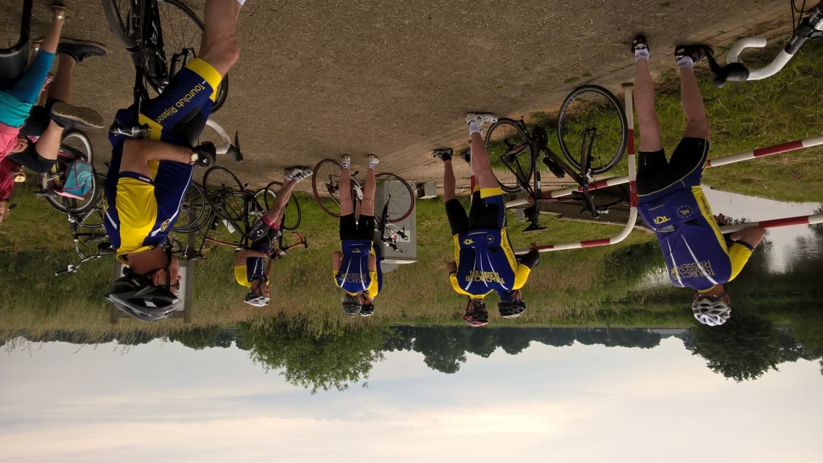 Verslag: Het is zaterdagmorgen. Wielerkleding met armwarmers aantrekken. Even buiten de gevoelstemperatuur checken of beenwarmers nodig zijn. Weinig wind. Volgens mij niet nodig. Bij de sporthal zie je dat daar meer personen over getwijfeld hebben. Aangekomen bij de Reggehal is de groep T2 kleiner dan dat we de laatste weken gewend waren. Meestal opgesplitst in twee groepen, is dat vandaag niet nodig, we gaan op weg met 9 personen, 1 vrouw en 8 mannen. De