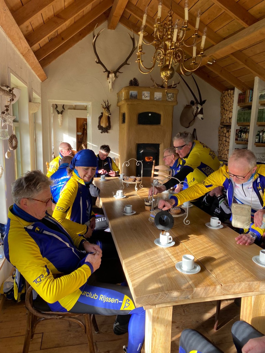 van hem. We worden al opgewacht in een mooi jachtonderkomen waar de Duitse kachel heerlijk brandt. Na de pauze via het