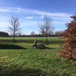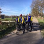 We stapten weer op en lieten Wim achter. Met de andere Wim als tourleider en de route van Wim G op de Garmin genoten we van het prachtige voorjaarsweer. Er was weinig verkeer en er werd lekker gereden. We moesten naar Boekelo. Bij Erve Geurts wachtte ons de koffie. Wim Grooten had het prima geregeld. Alleen de Garmin kon niet aan de nieuwe tourleider wennen. Ze was erg recalcitrant. Het duur niet lang of loo werd wel erg letterlijk genomen. We verplaatsten ons op onze stalen rossen als lichte cavalerie onder leiding van een oude ervaren ritmeester over een breed zandpad dwars door het loo. Uiteindelijk werden alle beschikbare middelen ingeschakeld om Erve Geurts te vinden. We bleken dus een fout adres in onze gedachten te hebben. Toen we de navigatie meer vertrouwen gaven, kwamen we aan bij ons koffieadres. We hebben daar het vorige seizoen ook koffie gedronken. Ik was in ieder geval door Boekelo goed op de verkeerde trapper gezet. De bewoners hadden voor ons een tafel klaar staan met eigen gebakken cake en koek. Prima koffie en bij het afrekenen betaalden we 1 euro per kop met een vrije gift voor de bijlage. We stapten weer op en reden naar Delden. Plots een zat Gerrit Troost op de fiets als een jachthond die voorstaat omdat hij wild op het spoor is. Warempel links van ons stonden vier reeén in het weiland. Voor de Groenebrug bij Delden stuurde Wim ons langs het kanaal. Met de wind in de schoot het mooi op. De afgesproken kilometers zouden we ruim halen en dat begon merkbaar te worden. Door Elsen ging het naar Rijssen toe. De wind vervelend tegen met een fantastische zon op ons gezicht. Na ruim 70 km kon ik mijn fiets in de garage ophangen met dank aan Wim en Wim.