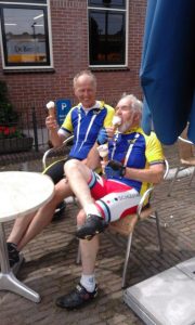 Muy det nou zo hatte enfin het liep mooi richting Holten en ze wilden bij de Biester een ijsje eten.Dat werd wel heel gezellig. Marinus nam er gelijk twee hij had de oogne neet vol na de consumtie,  richting Rijssen kregen we nog lek op het betonpad achter het spoor. Hier gaf Tonny een demo banden wisselen met het nodige commentaar schitterend.