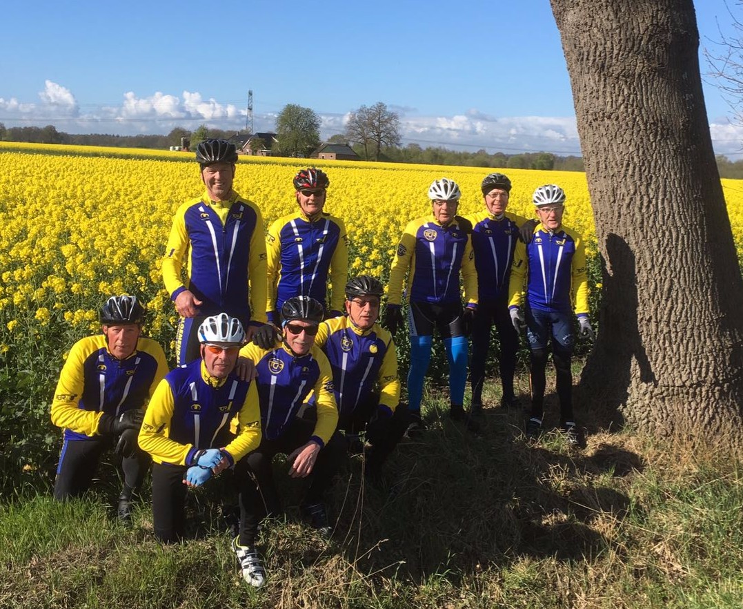 Verslag: Vanmorgen 8.30.Zowaar nog 10 man bij de sporthal waarvan 3 Enternaren we zitten zelf met een aantal uitgevallen coureurs wegens min of meer ernstige lichamelijke problemen,dus waren we best blij met de Enternaren.Jan kijkt naar de vlaggen bij de sporthal en zegt ik wol de kaante van Ommen op hier waren we vorige week ook geweest geen probleem Jan kent de weg perfect.we gingen via het Wierdenseveld richting Marle ik zag in de verte de gele koolzaadvelden en dichtbij het voetbalveld van Marle riep ik. Jan efkes stopm.hij zeg wat mutter gebuurn ik zei eewn van de fietse of.hier kerru vie ne mooie foto maakn.Dus alze gebeurde hij nzei muj toch is kiekn net aj in de Vogezen zeet.Hij zei nvan deze bloemen maken ze lijnolie ik zei Jan dat heb je niet goed dit gebruiken ze voor de olie en lijnolie komt van de de vlasplant gehoord van de molenaar PK.