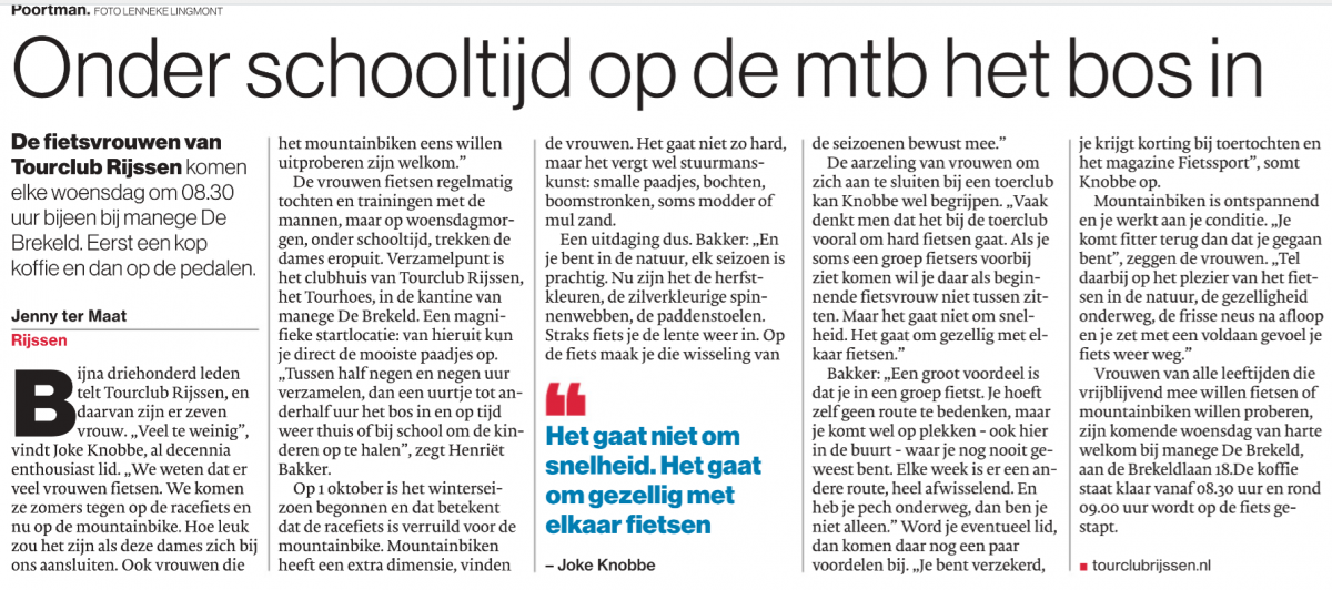 Naar aanleiding van het onderstaande artikel in TC Tubantia kunnen geinteresseerden dit formuliertje invullen en zal over enige tijd contact gezocht worden voor een voorlichtingsavond in het clubhuis van Tourclub Rijssen ¨het Tourhoes¨ in de manege aan de Brekeldlaan.