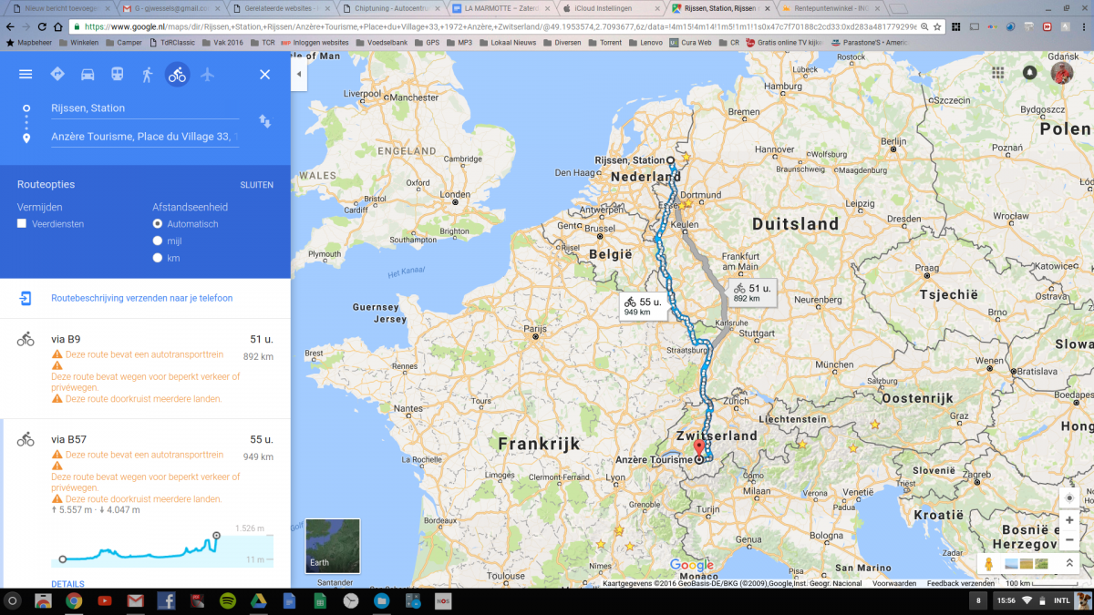 - In 2016 plaats je een garmin op je stuur en reserveer je elke dag een aantal hotelkamers op de plek waar je dat wilt, je kijkt onderweg naar de regenbuien, verdwalen kan nauwelijks nog en rij je op een fiets van kunststof met 30 versnellingen. Of dat leuker is ?
