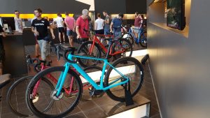 Als we het parkeerterrein opdraaien, zijn veel mensen bezig hun net gekochte Rennrad in of aan de auto te monteren te prutsen al dan niet met verpakkingsdoos, lijkt wel een soort bouwmarkt hier.